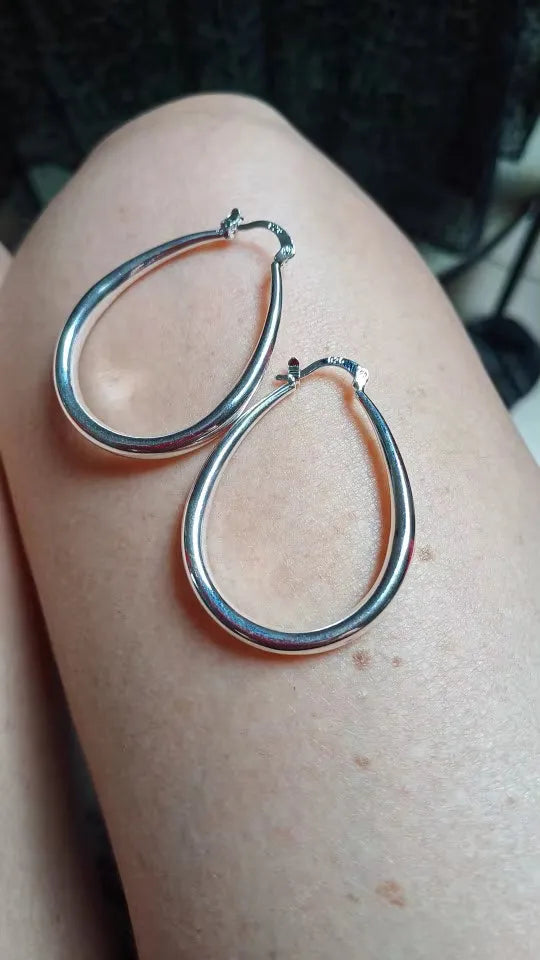 I'm seriously obsessing over these earrings!!! They're the perfect size for everyday wear, and the silver finish feels luxurious. Highly recommend if you're looking to add a touch of glam to your wardrobe.